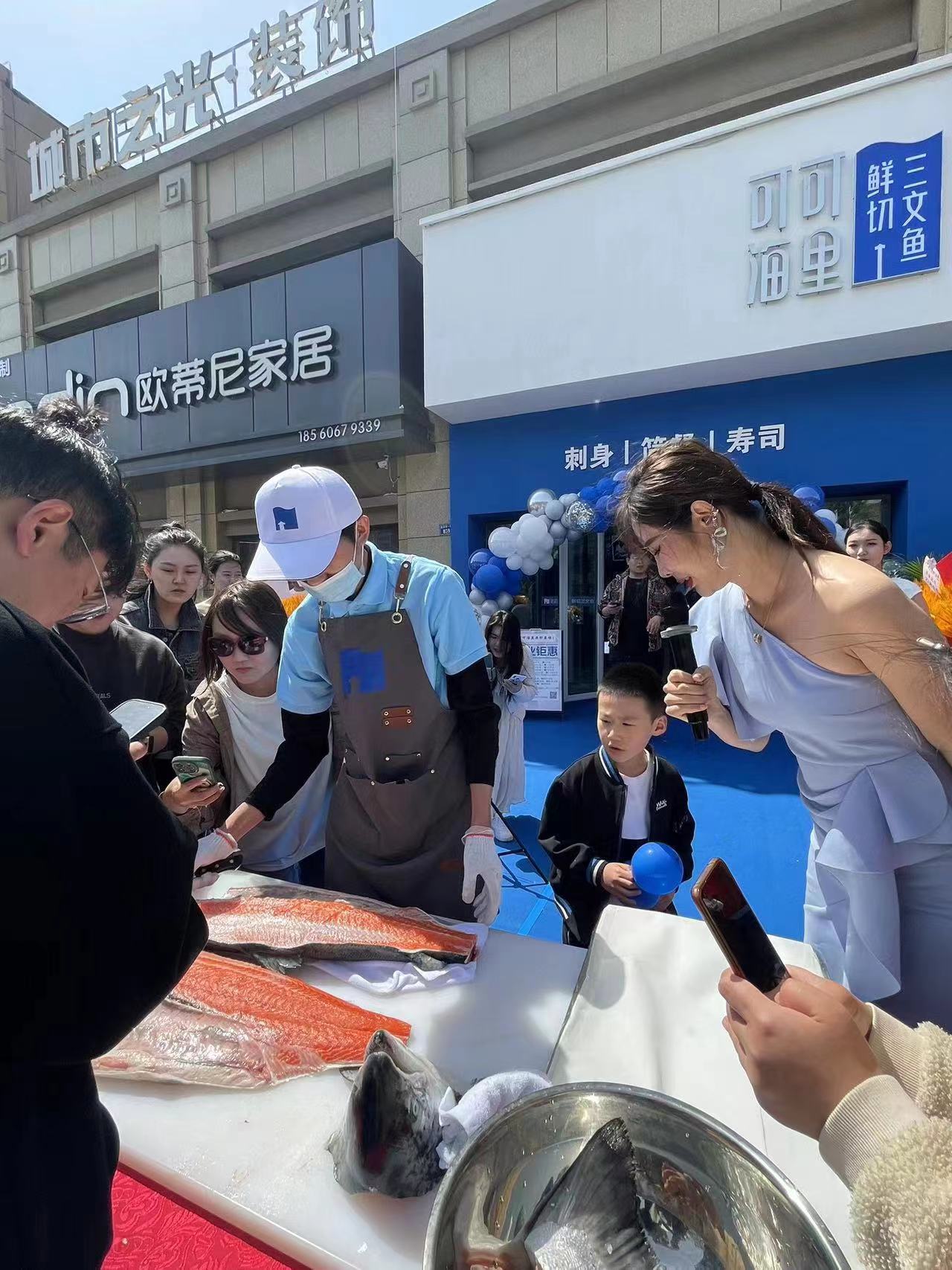 即墨店開店首日,廚師現場切割冰鮮三文魚