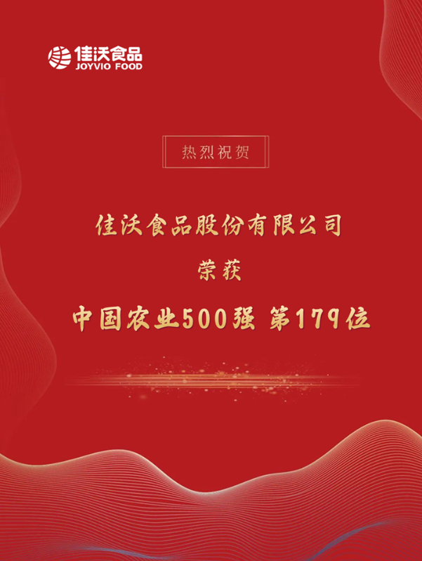 佳沃食品取得中國農業企業500強第179名佳績
